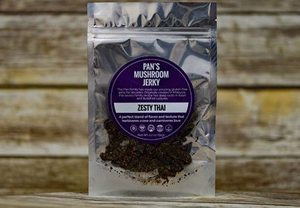 Présenté au Winter Fancy Food Show, le Pan's Mushroom Jerky est composé de tiges de champignons shiitake, d'huile d'avocat, de sucre de coco et d'épices. Les champignons shiitake boisés sont mélangés dans une variété Umami de galettes de bœuf bio de Tribali Foods. De Yuguo Farms vient une gamme de chips de champignons shiitake aux saveurs originales, épicées et wasabi.